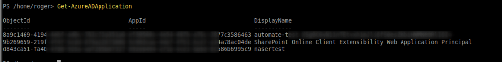 Get-AzureADApplication
