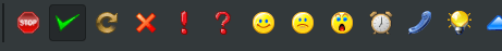 A red ! is for me did not go well. Command did not work for example. Happy face, I have got something. Sad face got nothing. Red cross did not run. So when the pentest is over I delete every category that hav a red cross.