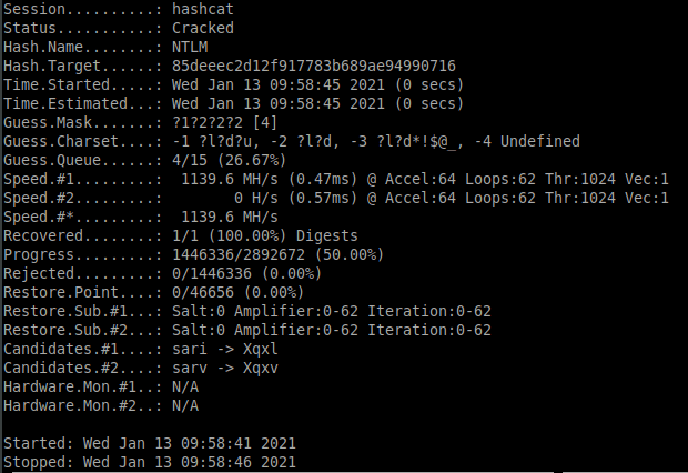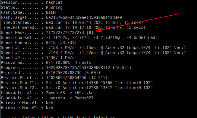 In this post I will try to explain why it is important to use masks when you crack password from hashes with hashcat. The machine that I run hashcat on has 2 Tesla M60 card and running Linux. Why do I not use longer password in this test, I do not want to wait 7 days just to show a point. It is also depends on what type of hashes that you will crack. In this example we use NTLM hashes.