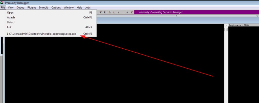 Start Immunity debugger as Administrator and Open oscp.exe, press f9 to run.