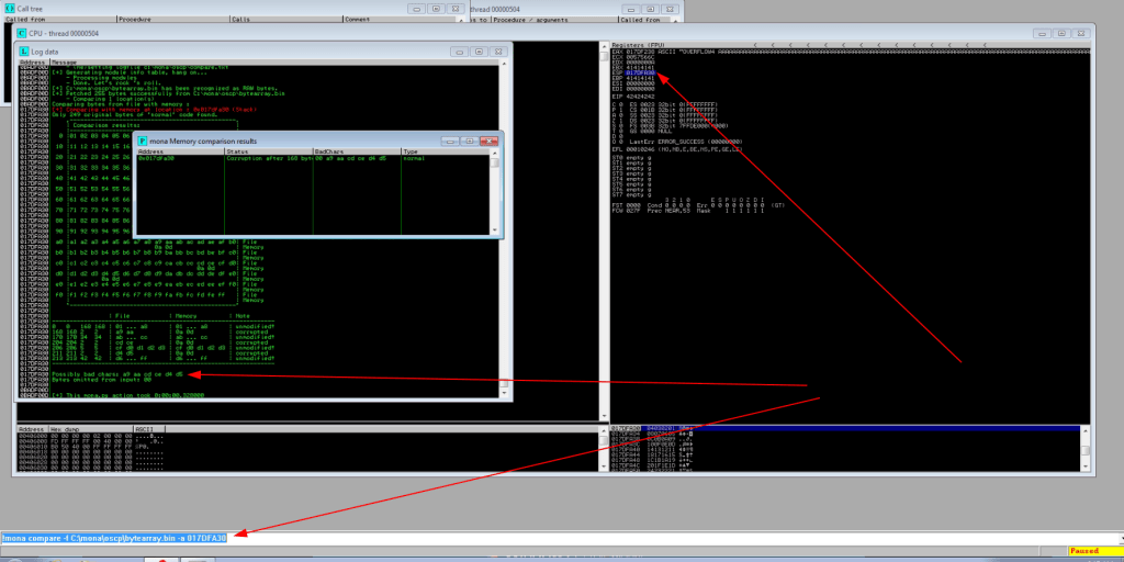 !mona compare -f C:\mona\oscp\bytearray.bin -a 017DFA30