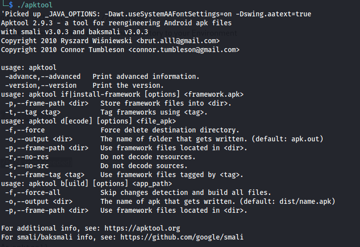 4. Move both apktool.jar and apktool to /usr/local/bin. (root needed)