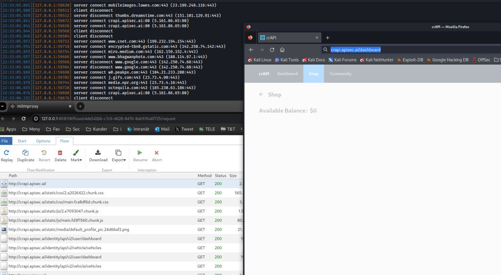 burpsuite, zap, mitmproxy, postman, jwt_tool, Kiterunner and mitmproxy2swagger