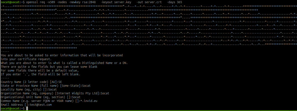 Create a certificate for Socat